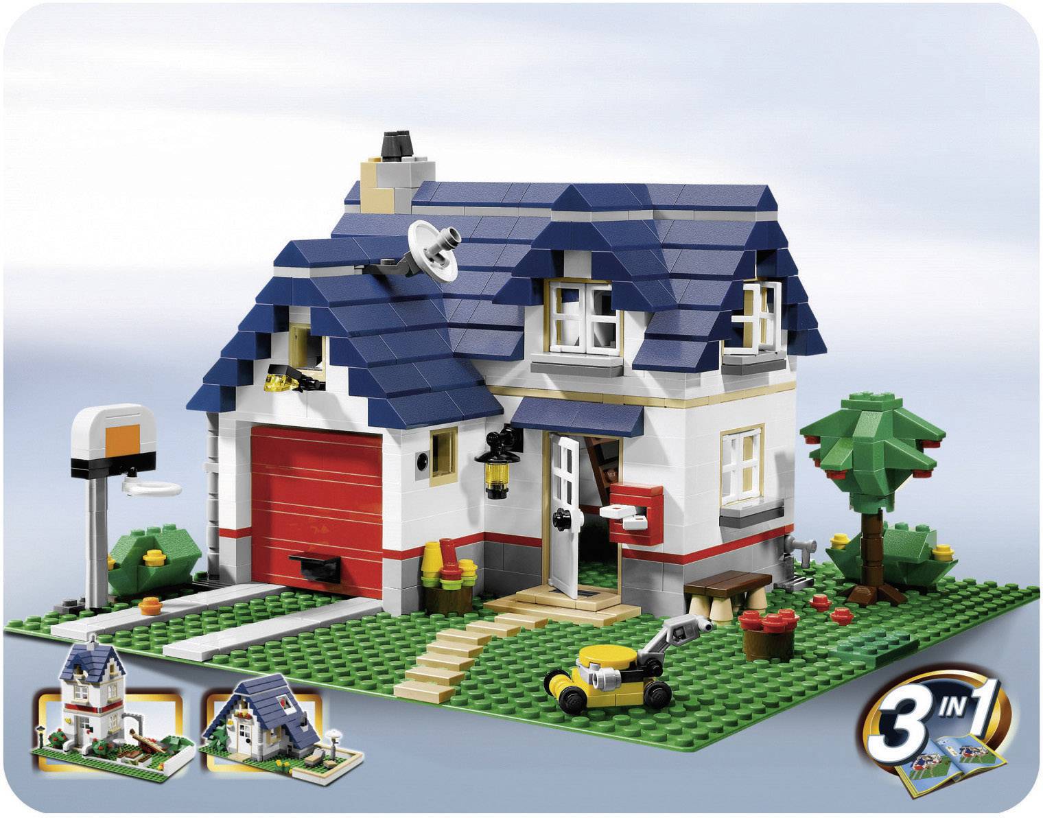 Lego Creator 5891 Haus Mit Garage. Und sieh dir den coolen Basketballkorb und den Rasenmäher an! Customers can also build a tall townhouse or a relaxing summer house out of this set.
